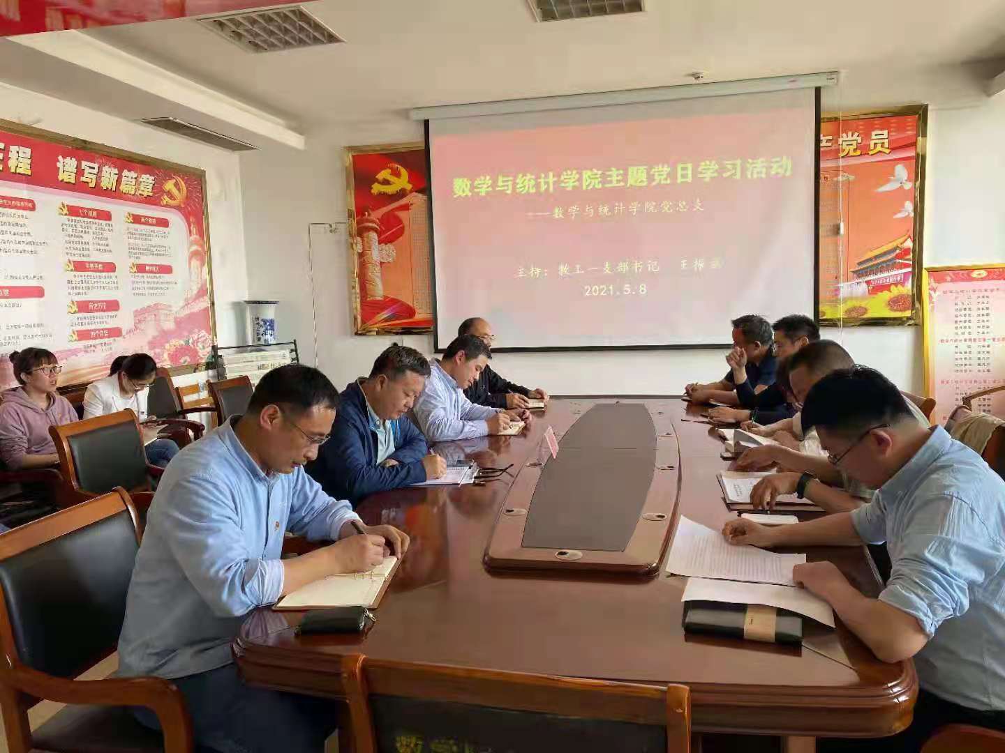 5月8日下午,数学与统计学院教工一支部在综合楼1510会议室开展主题党日学习活动,校党委委员、副校长丰雷以普通党员身份参加,并与支部党员同志一起学习、谈心交心。会议由支部书记王振立主持。