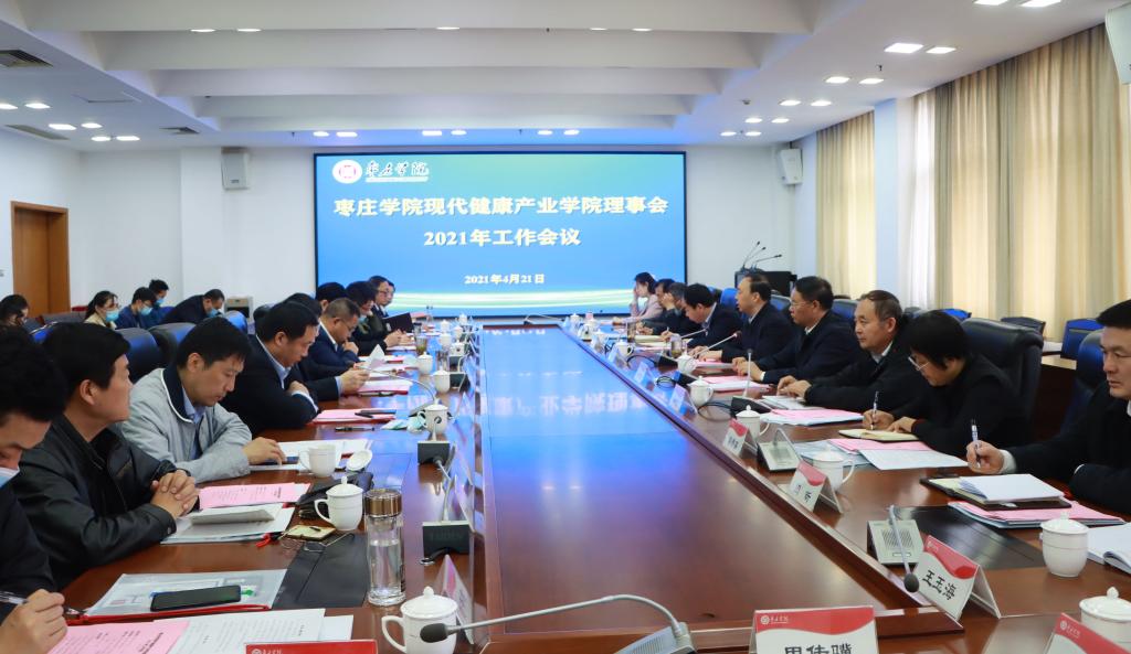 为进一步促进产教深度融合,推动人才培养与产业需求对接,4月21日上午,永利官网在综合楼三楼会议室召开现代健康产业学院理事会2021年工作会议。校党委书记曹胜强出席会议并讲话,校长李文喜主持会议。枣庄市工业信息化促进中心主任张广磊出席会议,永利官网教务处、科技处、合作发展处、鲁班应用技术学院负责人,现代健康产业学院理事会会员单位代表等参加会议。