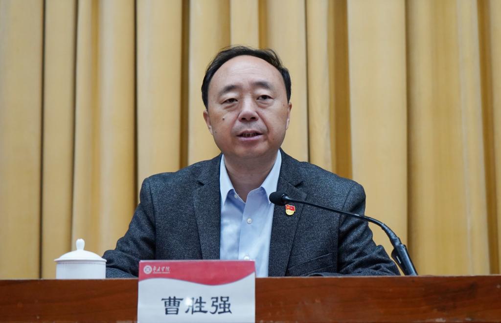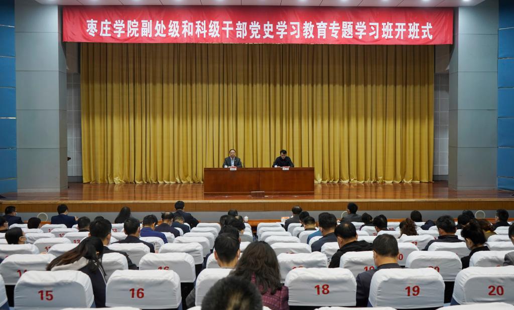 4月19日上午,永利官网副处级和科级干部党史学习教育专题学习班开班式在综合楼报告厅举行。党委书记曹胜强出席开班式并作动员讲话。会议由校党委委员、组织部部长孙正主持,校党委委员、宣传部部长张昌林,校党委委员、统战部部长林勇出席开班式,全校副处级、科级干部参加开班式。