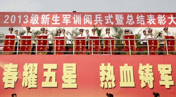 秋风送爽,军歌嘹亮。9月20日,永利官网2013级新生军训阅兵式暨总结表彰大会在学校西田径场隆重举行。校领导胡小林、曾宪明、高庆喜、颜世昌,新生军训团团长刘鹏正出席大会。