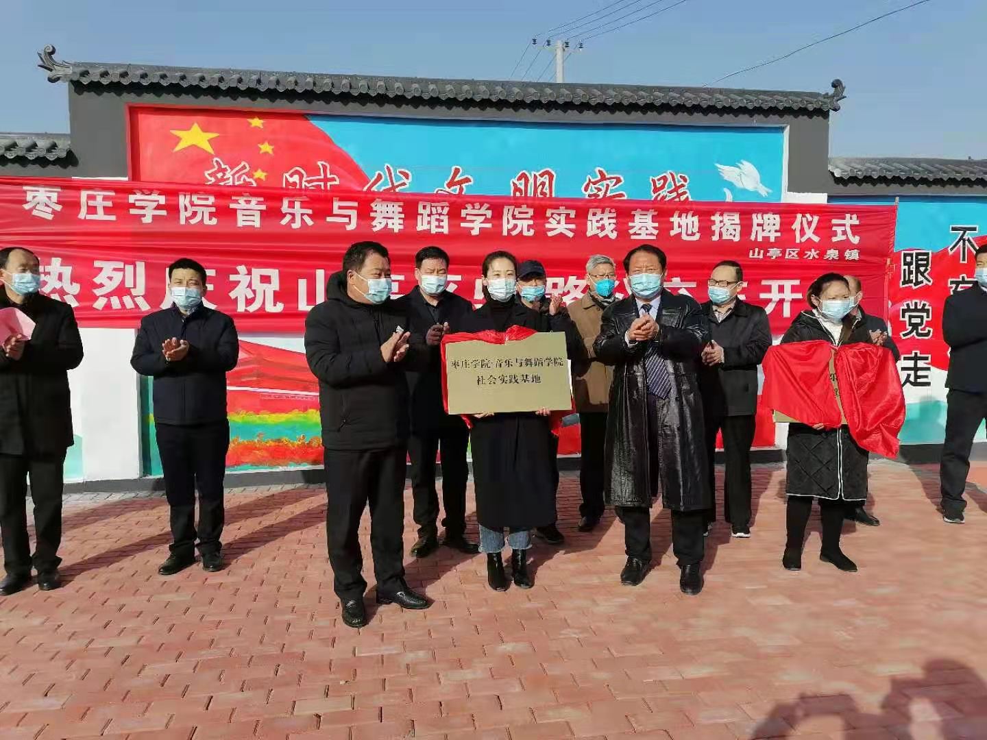 1月12日上午,88858cc永利官网音乐与舞蹈学院、山亭区水泉镇共建大学生实践基地(艺术实践、社会实践)揭牌仪式在水泉镇白蒋峪村举行,88858cc永利官网音乐与舞蹈学院院长李永、枣庄市文化和旅游局副局长李志宏、水泉镇乡村振兴服务队队长贾广平、枣庄市文化馆馆长徐隆、枣庄市文化馆党支部书记孙辉、山亭区文化和旅游局局长王明翰、水泉镇党委书记郗涛勇出席了本次活动。