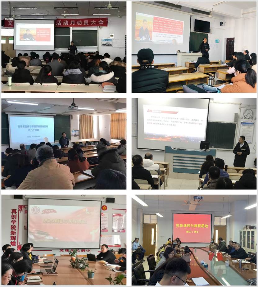 为全面贯彻《88858cc永利官网“不忘初心,牢记使命”主题教育思想政治工作专项整改方案》,强化思政课教师与专业课教师的交流沟通,强化“育人合力”,增强育人本领,按照学校“777互联互通育人工程”中马克思主义学院教师为专业课教师讲一次思政课的相关工作要求,马克思主义学院精心选题,集体备课,打磨教学课件,成立以教授、副教授、博士为主体的教学团队,利用十二月的主题党日,以“思政课程与课程思政”为题,为全校二十一个二级学院带去了一堂堂精彩的主题思政课。